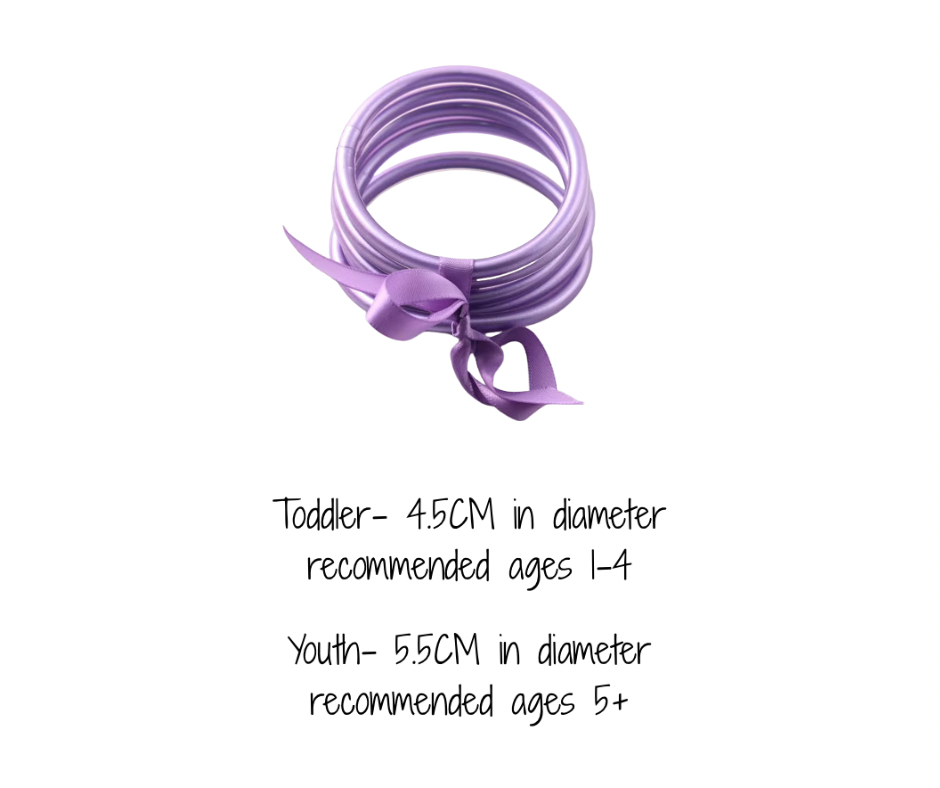 Our best selling jelly bangles in a brand new color! Waterproof and the perfect summer color.  These tube bracelets are the perfect way to elevate any outfit. These are sold as a set of five and are available in two sizes, toddler and youth. Crafted with flexible material for an easy on and off for your little one. Parents understand that they will be solely responsible for the use of the bangles with their children.